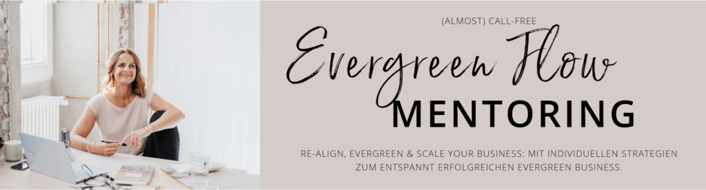 Evergreen Flow ist für dich, wenn dein Angebot wieder zu 100 Prozent die Schnittmenge aus deiner Zone of Genius und echter Nachfrage sein soll. Du stärkst das, was schon da ist, machst es wirksamer und stimmiger und baust ein System, das im Hintergrund stabil für dich läuft, heute und für 2026. Es geht um ein Upgrade, nicht um ein komplettes Neumachen. (D)ein Weg, wie du leichter, natürlicher und planbarer verkaufen kannst.