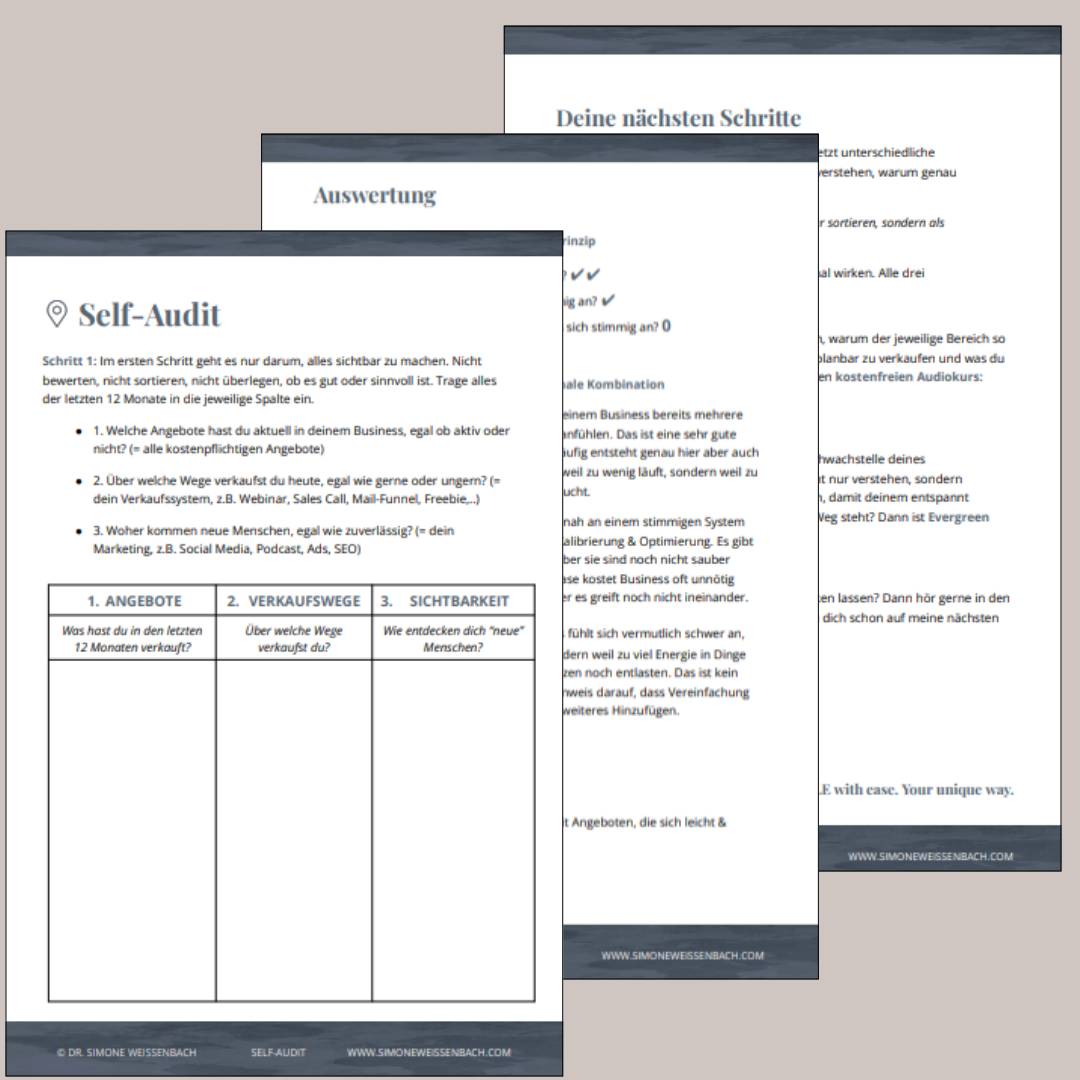 2. Nimm dir danach 10–15 Minuten für die strategische Diagnose deines Business. Lade dir das Worksheet runter und lass dich durch das Audit führen.