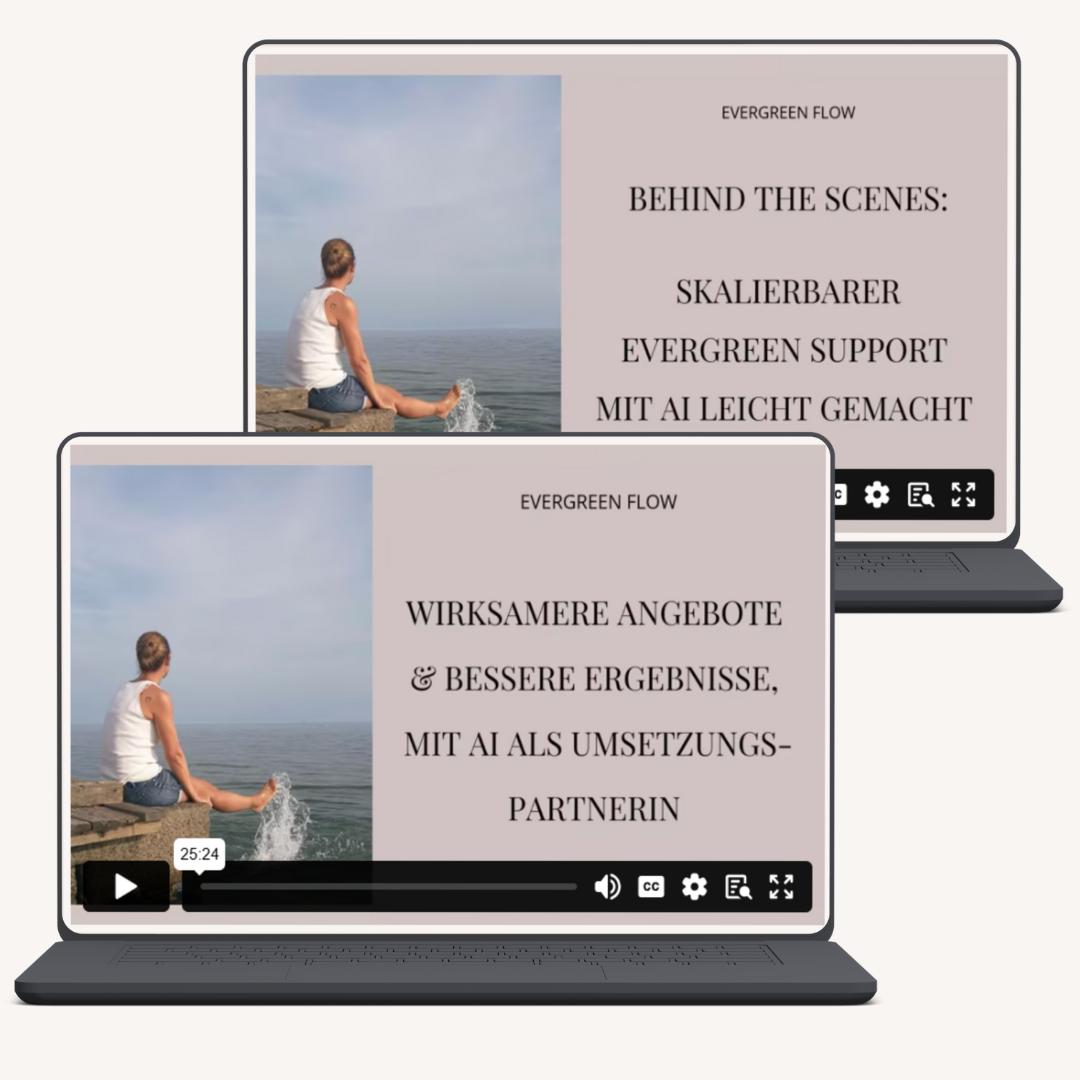 Das kommt ganz auf dich und deine aktuelle Phase an. Evergreen Flow funktioniert komplett eigenständig. Du hast die Simone AI als strategisch-empathische Sparringspartnerin jederzeit an deiner Seite, die dich Schritt für Schritt durch den Prozess führt.